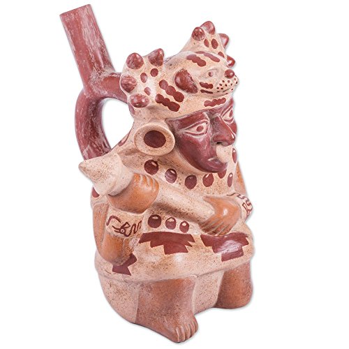 NOVICA 'Moche Cat Warrior' Ceramic Decorative Vessel