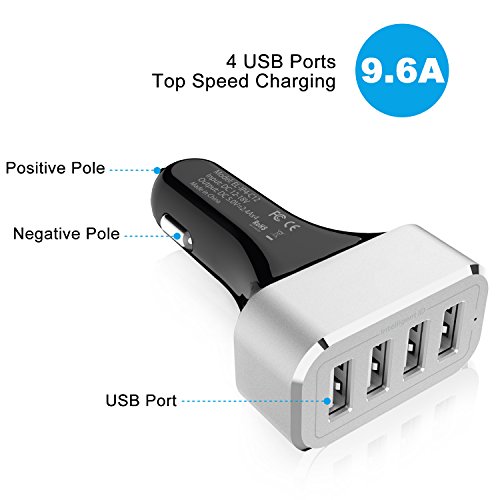 Redlink 9.6A 4-Port USB Car Charger with Adaptive Charging Technology for iPhone 6s / 6s plus / 6, iPad Air 2, Samsung Galaxy S6 / S6 Edge, Nexus, HTC M9, Motorola, Nokia and more