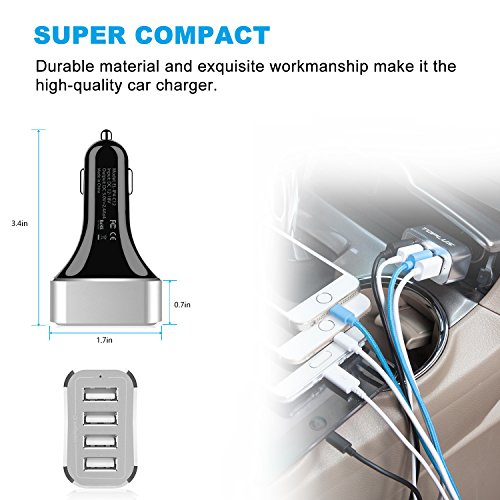RAPID CHARGING –4 charging USB ports, charge iPhone 6, Samsung Galaxy S7, HTC Vive and all your favorite cell phones and mobile devices right in the comfort of your car and faster than ever.
