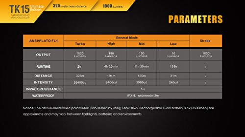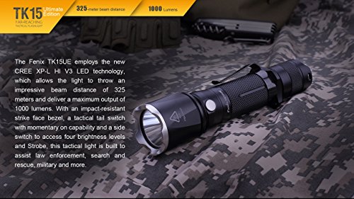 Fenix TK15UE (TK15) Ultimate Edition 1000 Lumen Tactical LED Flashlight w/ 2x CR123A Batteries and LumenTac Battery Organizer