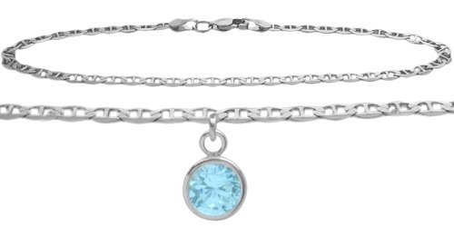 -. Title : Genuine Sterling Silver Mariner Anklet with Genuine Blue Topaz Round Charm