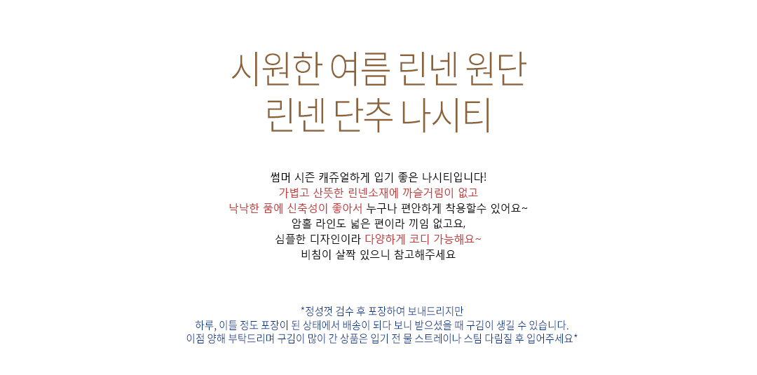 ※ 린넨 원단 특성 상, 원단의 줄은 원단 자체에 생긴 것이므로 불량이 아니며,