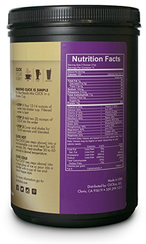 CLICK Espresso Protein Drink combines gourmet espresso coffee with 15 grams of lasting protein and 23 vitamins and minerals CLICK to provide the energy support you crave without the high calories, sugar and fat. With only 120 calories in a 12 oz. serving, heightened with a rich and delicious taste