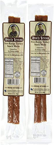-. Binding : Misc. -. Brand : Nick's Sticks -. EAN : 0798304177398 -. Feature : Free Range Turkey / No Sugar / Organic Seasoned salt / No MSG or Nitrates / 100% Gluten Free -. Label : Nick's Sticks -. LegalDisclaimer : Actual product packaging and materials may contain more and different information than what is shown on our website. We recommend that you do not rely solely on the information presented and that you always read labels, warnings, and directions before using or consuming a product. -. Manufacturer : Nick's Sticks -. Model : 2-025 -. PackageQuantity : 12 -. ProductGroup : Grocery -. ProductTypeName : GROCERY -. Publisher : Nick's Sticks -. Studio : Nick's Sticks -. Title : Nick's Sticks Free Range Turkey Snack Sticks - Gluten Free - No Antibiotics or Hormones (12 packages of 2 sticks) -. UPC : 798304177398