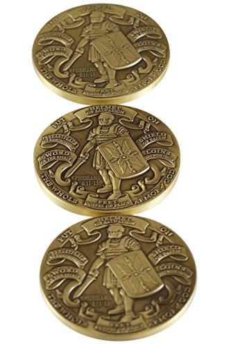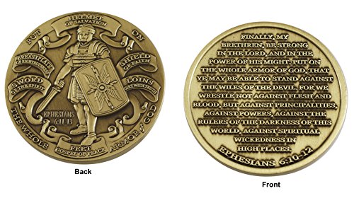 -. Feature : Armor of God High Relief Challenge Coin / Antique Brass Plating / Size: 1 3/4 inch (44mm) Round Material: Bronze Antique / Each coin comes individually packaged in an plastic envelope / Choose your quantity above-- buy more, save more
