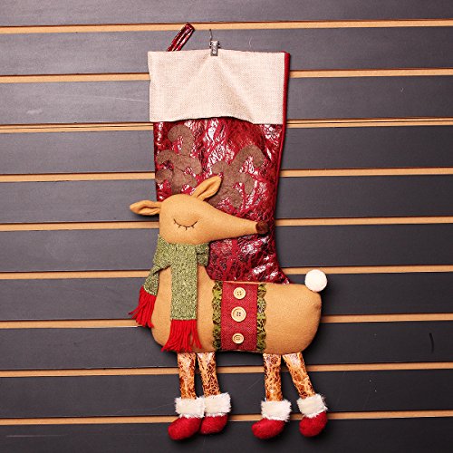 - ► This holiday stocking using red flannel and beige linen trim, but to give it a little Christmas holiday atmosphere, we added a 3D reindeer with exquisite detailing like knitted woolen scarf and furry shoes. Colors in red,green and white that make it to match all your Christmas decor.
