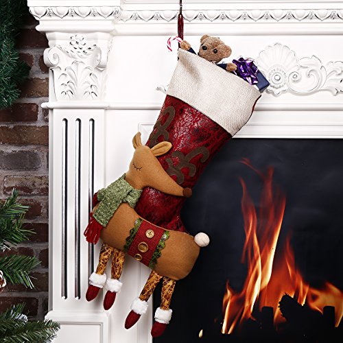 Codream 18" Christmas Stocking Lovely 3D Reindeer Classic Holiday Xmas Stocking Your Family Will Love ( 18"x10" Reindeer )