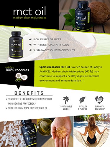Sports Resarch MCT Oil contains only the Caprylic and Capric acid made from Pure Coconut Oil.