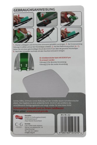 -. Binding : Automotive -. Brand : ECOCUT pro -. Color : grün/ weiß -. EAN : 4003073087615 -. Feature : Scheibenwischer-Nachschneider ECOCUT pro / erneuern Sie Ihre Scheibenwischer einfach direkt am Auto / der beschädigte Teil der Wischerlippe wird präzise abgetrennt / die Scheibenwischer arbeiten wieder schlierenfrei / einfache und schnelle Anwendung / Dieser Artikel wird vorübergehend entweder mit grünem oder mit weißem Schwamm geliefert. Farbwünsche können leider nicht berücksichtigt werden -. IsAutographed : 0 -. IsMemorabilia : 0 -. Label : Akron -. Manufacturer : Akron -. Model : 727 -. MPN : 727 -. PackageQuantity : 1 -. PartNumber : 727 -. ProductGroup : Automotive Parts and Accessories -. ProductTypeName : AUTO_PART -. Publisher : Akron -. ReleaseDate : 2014-02-11 -. Size : 6 x 3,6 x 4 cm -. Studio : Akron -. Title : ECOCUT pro - Scheibenwischer Nachschneider
