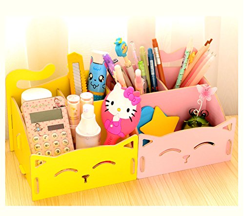 -. Feature : Material: wood, durable, beautiful and environmental friendly. / This holder need assemble by yourself, made of some pieces. Wooden organizer and can be easily disassembled and setted up. / Space saving and keep your essentials organized, contemporary design looks great on dresser or desk. / Multi-purpose organizer for makeup, jewelry, stationery and more, perfect for living room, bedroom, batchroom, children rooms, dresser, office, desk and so on. / Size: 6.0x5.1x5.3 inches