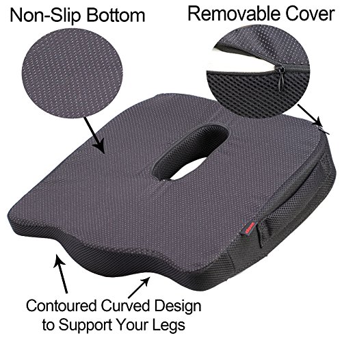 - ◆NON-SLIP BOTTOM DESIGN -- At the bottom of the gel seat pad area is with non-slip rubber materials ensures the coccyx pillow stays in place and will not shift or slide on any surface , so you can enjoy the ZZCP coccyx cushion to bring you the comfort