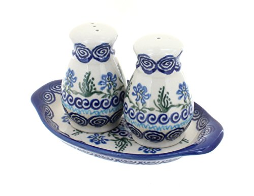Polish Pottery Charleston Salt & Pepper with Tray