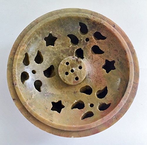 Soapstone/Stone Incense Burner Bowl, Pot, Jar for Cones, Sticks, Resins or Charcoal-Flower/Heart/Teardrop Pattern