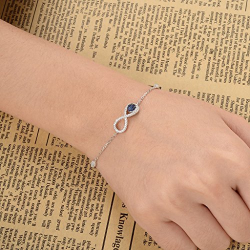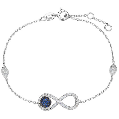 -. Binding : Jewelry -. Brand : EVER FAITH -. Department : womens -. Feature : [!]EVER FAITH is a US registered trademark and Ever Faith Jewelry(former name: Kiss Bling) is its only owner. We will pursue legal action against trademark infringement in case of UNAUTHORIZED sale or resale. / We have SGS Professional Certification for our Sterling Silver Items. Customers could go to a professional agency for testing them. 925 Sterling Silver is also suitable for sensitive skin to wear. / Cubic zirconias are paved to the jewelry item to secure from loosing. Pave settings are made up of lots of small stones set closely together. The stones are separated and held in place by little beads of the setting metal. The result is what looks like a continuous surface of the stones. / Length:17cm(6.7")-20cm(7.9"), Width:0.8cm(0.3"),Weight:3g / Wrapping: Come With a Silver Polishing Cloth and a Gift Box or Favor Bag (Depend on Product Size). Sterling silver may require cleaning from time to time.Silver Polishing cloths are an excellent choice for cleaning your sterling silver jewelry. They will remove the tarnish and dullness, keeping your sterling gift like new. If you need assistance please contact us. -. Label : EVER FAITH -. Manufacturer : EVER FAITH -. Model : N07299-1 -. MPN : N07299-1 -. PartNumber : N07299-1 -. ProductGroup : Jewelry -. ProductTypeName : FASHIONNECKLACEBRACELETANKLET -. Publisher : EVER FAITH -. Studio : EVER FAITH -. Title : EVER FAITH® 925 Sterling Silver Cubic Zirconia Elegant Figure 8 Infinity Leaf Link Bracelet Blue w/ Clear