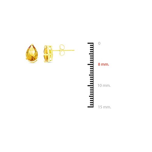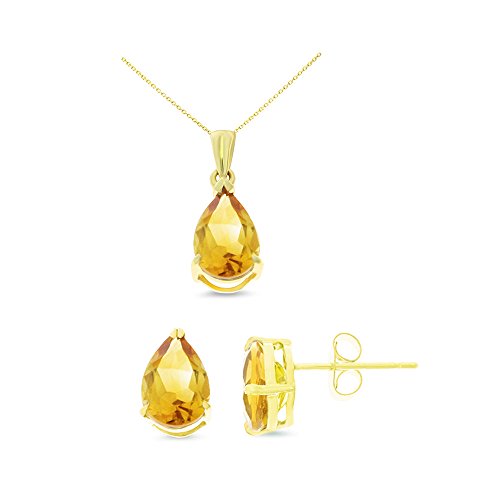 -. Title : 14K Yellow Gold 6 x 8 mm. Pear Genuine Natural Citrine Earrings + Pendant Set With Square Rolo Chain