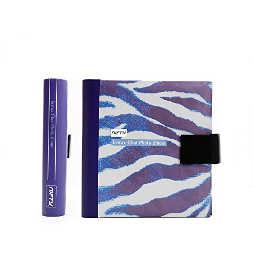 Nifty NIAL-NWS02PP NIFTY Instax Mini and Polaroid 300 Photo Album Purple and White Zebra (Holds 84 Photos) (Purple with White)