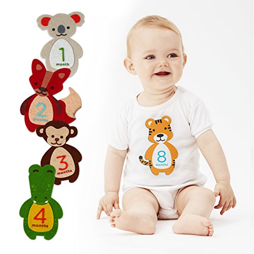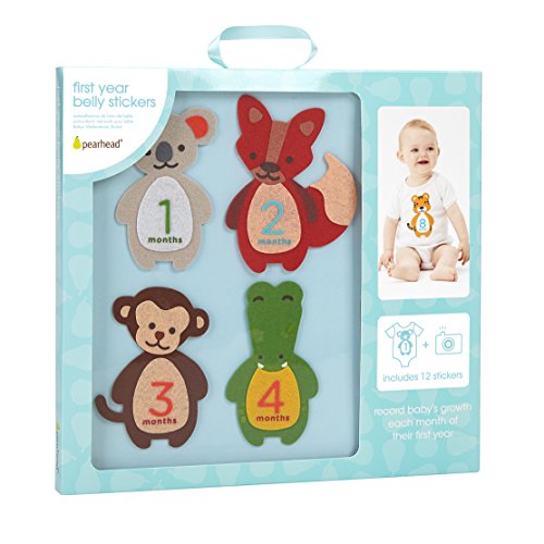 -. Title : Pearhead First Year Monthly Milestone Felt Animal Photo Sharing Belly Stickers, 1-12 Months