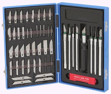 Studio : Gordon Publisher : Gordon Binding : Misc. Product Description Pick up this amazing precision knife set and cut, scratch, etch, scrape, layout and make models with ease! Magnetic strips hold loose blades and scribes in place and each blade, handle and stone has its own recessed holding place for added convenience. A great set of tools for hobbyists and wood workers. 0
