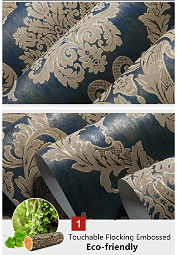 -. Feature : Vintage French Damask Textured Wallpaper, Extra-thick Non-woven / Each Roll is 20.8 Inches Wide by 11 Yard Long, Covering 57 Square Ft. / Unprepasted, Water resistant, Strippable,Removable. / Flocking Embossed Textured, Pearl P.R.Inting Craft / Antimicrobial Product Protection Works to Inhibit Bacterial Odors, Stains and Mold and Mildew Growth