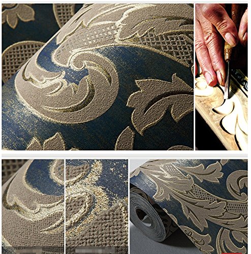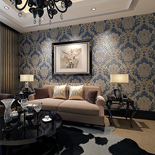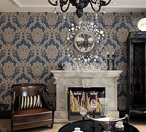 -. Title : Blooming Wall R0307 Non-woven Vintage Blue French Damask Textured Wallpaper Roll Wall Paper for Livingroom Bedroom 20.8" x 393.7"