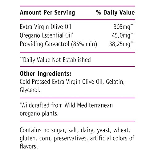 -. Feature : Teliaoils Oregano oil Softgels is a superior product which contains organic oil of Greek wild oregano, extra-virgin, cold-pressed, unrefined, organic olive oil (Olea europaea) gelatin. It is intended to all those who with difficulty bear the drinking of wild oregano oil. Every soft gel contains 350 mg Organic oils / Its from Greek Mountains Wild oregano "origanum vulgare", 100% Non-GMO, 100% Organic. It is Top Quality and very effective has 85% Carvacrol rating! Low Thymol Rating (less than 2%). / Every softgel contains 45mg Oregano Essential oil / providing carvacrol is 38.25 mg. It is easy to create a larger softgel but its better to spread the dose over the period of the day rather than taking them all at once. / Comfortable for use. In a comfortable and pleasant manner without P.R.Ickling sensation, pungency and associated symp, you can consume the oil of wild oregano and enjoy in its therapeutic effects. Teliaoils Strong oil of wild oregano will always be at hand because you can carry it with you anywhere. / We are proud that we was the first company that introduce the Greek wild Oregano oil to Amazon buyers. HIGH QUALITY oil - FREE OF: sugar, salt, dairy yeast, wheat, gluten, corn, preservatives, artificial colors, flavors