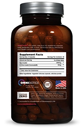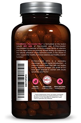 -. Feature : PROMOTES HORMONE BALANCE + SUPPORTS OVARIAN FUNCTION & EGG QUALITY - Said to be an effective anxiolytic at higher doses, inositol (myo-inositol) may help treat insulin resistance and PCOS with standard doses. Myo-Inositol PlusTM female reproductive support complex has shown great promise as a natural way to improve hormone balance, ovarian function, egg quality, skin disorders and more.† / D-CHIRO-INOSITOL NATURAL INSULIN SUPPORT - Myo-inositol is believed to improve female fertility by promoting proper utilization of the insulin hormone. Caronositol® 300mg is added to each serving to help improve its efficacy. Caronositol® is natural D-chiro-inositol botanical extract (minimum 95%) purified from carob pod by a solvent free patented process. / EMOTIONAL WELLNESS AND MOOD SUPPORT - Diminish PMS and PMDD mood swings: All major neurotransmitters (dopamine, norepinephrine, serotonin, acetylcholine, and GABA ) rely on inositol to relay messages. Myo-Inositol PlusTM inositol and inositol d chiro ingredients promote mood-enhancing neurologic support and may be effective at treating various mental health conditions including anxiety, binge eating, PMS, depression, panic attacks and more.† / 100% SATISFACTION GUARANTEED - OmniBiotics® Myo-Inositol PlusTM is made in USA and produced under strict Good Manufacturing Practice (GMP) guidelines in NSF certified FDA-inspected facilities. Manufactured with NO wheat, gluten, yeast, soy, milk, egg, fish, shellfish or tree nut ingredients. We use ZERO animal by products. Crafted with extreme care in order to ensure effectiveness; we offer a 100% Money-Back Satisfaction Guarantee. / 100% SAFE & NATURAL FERTILITY SUPPORT - Inositol is prevalent in the diet and found in most foods; especially in whole grains and citrus fruits. Myo-Inositol PlusTM features a pure, potent and safely sourced 2000mg of myo-inositol per serving within vegetarian capsules. Common misspellings for female reproductive system support include DCI, inistol, inostol, inisotol, innositol, insistol, onositol, dchiroinositol, d chiroinositol, d chiro inosital, d chiro insositol, d chiro insitol, myoinositol