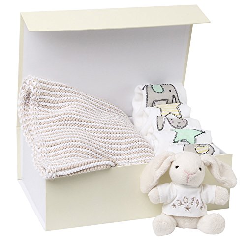- Gift set includes: Neutral stripe blanket, 5 neutral muslins, 2014 JoJo Bunny (height: 11cm), Lemon medium gift box (size: 20 x 15 x 9cm)