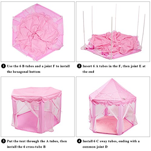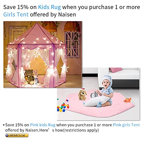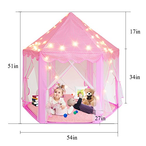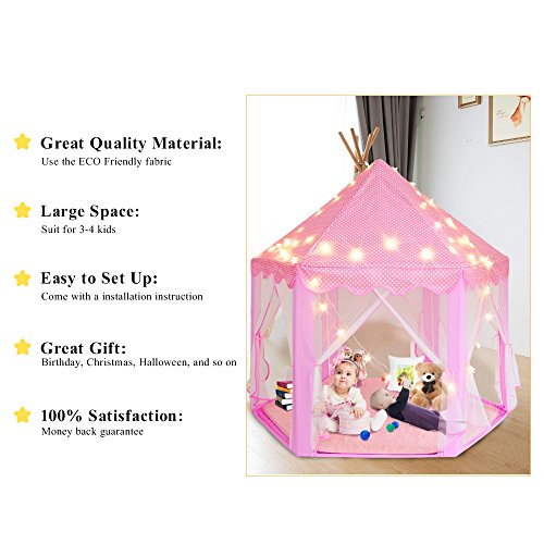 Package includes: 1*Castle tent 1* Tent Storage bag and a gift :1* LED stars light(The package is not including carpet, If you need the carpet, please order separately)
