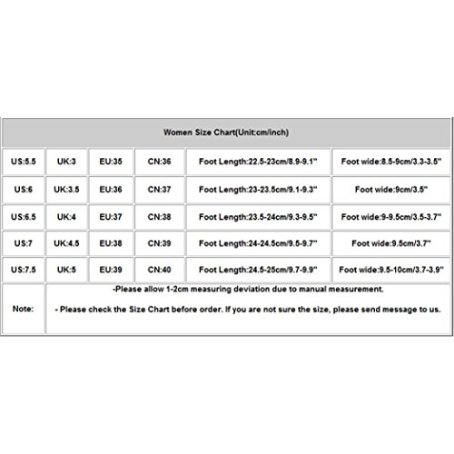 Binding : Apparel Product Description Shoes Heel High:5.5cm Waterproof Taiwan:2.5cm Toe Shape: Round head Appropriate Season: Spring,Summer Occasion: IndoorOutdoor,Fashion,Leisure Package: 1 Pair Women Shoes(Not including shoebox) NOTE: As different computers display colors differently,the color of the actual item may vary slightly from the above images. US:5.5 --- UK:3 --- EU:35 --- CN:36 --- Foot Length:22.5-23cm/8.9-9.1" --- Foot wide:8.5-9cm/3.3-3.5" US:6--- UK:3.5 --- EU:36 --- CN:37 --- Foot Length:23-23.5cm/9.1-9.3"--- Foot wide:9cm/3.5" US:6.5--- UK:4 --- EU:37 --- CN:38 --- Foot Length:23.5-24cm/9.3-9.5" --- Foot wide:9-9.5cm/3.5-3.7" US:7 --- UK:4.5--- EU:38--- CN:39 --- Foot Length:24-24.5cm/9.5-9.7" --- Foot wide:9.5cm/3.7" US:7.5 --- UK:5 --- EU:39--- CN:40--- Foot Length:24.5-25cm/9.7-9.9" --- Foot wide:9.5-10cm/3.7-3.9" 0