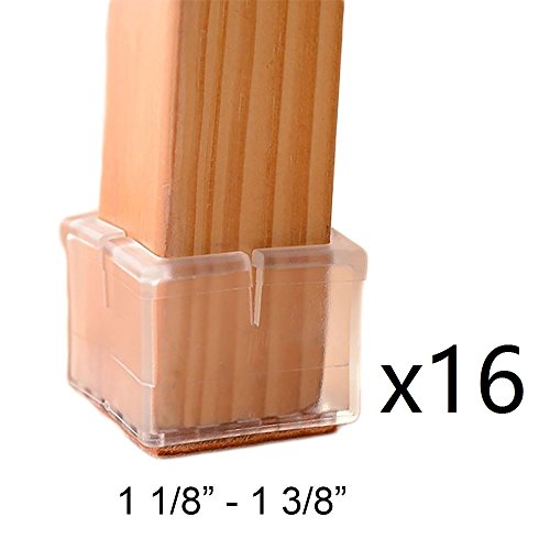 CoolHome Transparent Silicone Chair Leg Caps Felt Pads Furniture Pad Chair Leg Floor Protectors (Pack of 16, Square 1-1/8" to 1-3/8")