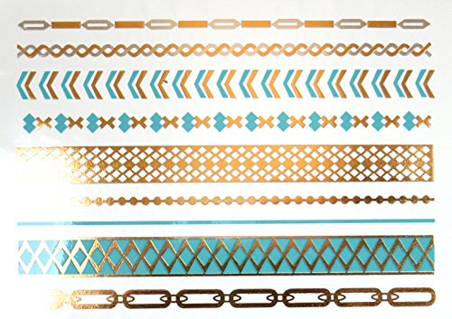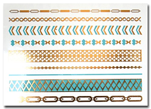 Akjo Group E Design 34-41] [No.35] Temporary Metallic/Gold Tattoo, Silver/Turquoise Green