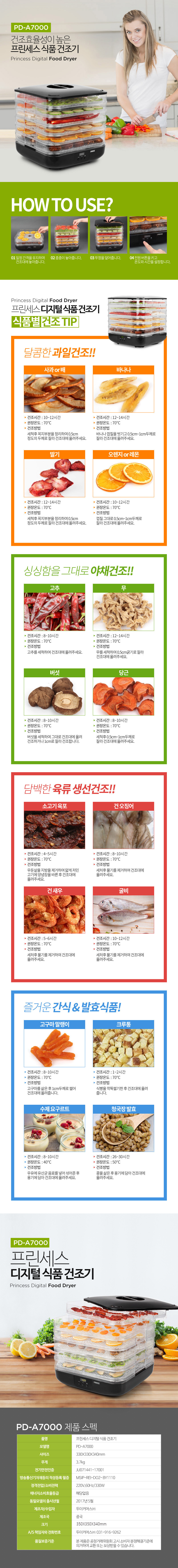 Item name and model name Princess Digital Food Dryer PD-A7000 KC certification status JU071441-17001 Rated voltagecondition power 220 V 60 HZ, 330 W, not applicable Size 330 X 330 X 340 mm, 3.7 kg
