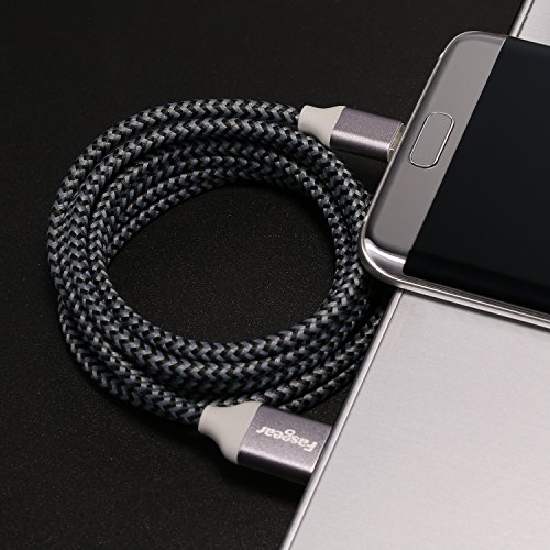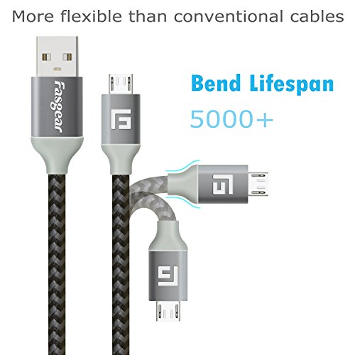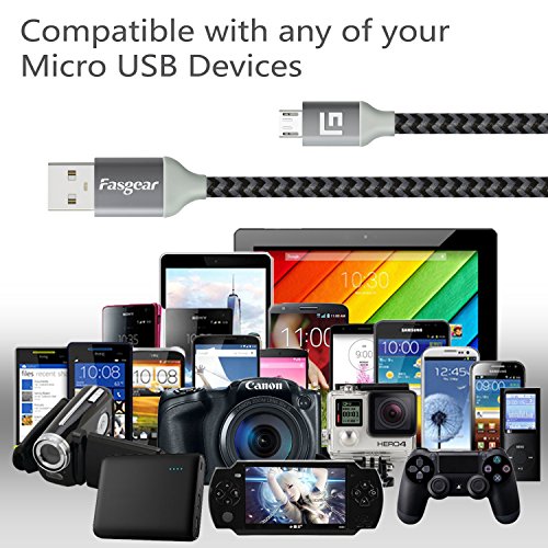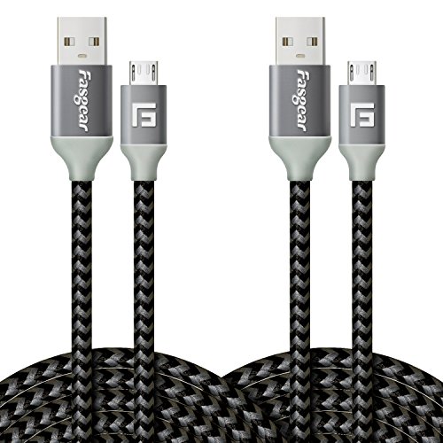 Micro USB Charger, 2 pcs (10ft/3M) Fasgear Nylon Braided Tangle-Free Fastest charger data colorful cable with Metal Connectors for Android, Samsung galaxy S7/S7 edge, HTC and more(2pcs Black)