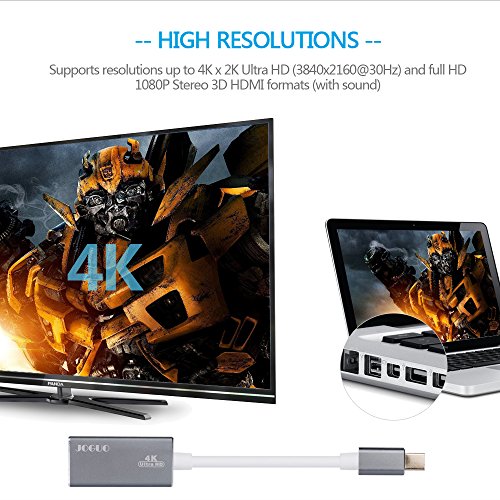 Mini DisplayPort to HDMI 4K(0.5ft), JOGUO Thunderbolt 2 Port Compatible to HDMI UHD 4K Male to Female Active Converter Cable Adapter - 3840x2160@30Hz for Microsoft Surface Pro,Mac Book,IMac and More