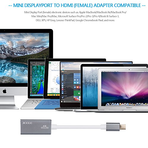 MINI DISPLAYPORT TO HDMI (FEMALE) ADAPTER COMPATIBLE: Mini Display Port (female) electronic devices such as Apple MacBook/MacBook Air/MacBook Pro/Mac Mini/Mac Pro/iMac, Microsoft Surface Pro/Pro 2/Pro 3/Pro 4/Book & Surface 3, DELL XPS, HP Envy, Lenovo ThinkPad, Google Chromebook Pixel, and more.