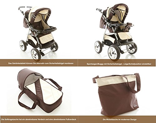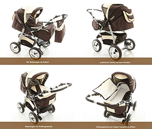 -. Feature : Pram Stroller mega set | All in One Offer | 3 FREE articles | More on www.youtube.com/Lux4Kids / solid steel construction, height-adjustable handle, adjustable hood, use as by / Made in EU (DIN EN1888/2005) / 2-way suspension system 2 x hardness adjustment, parking brake, multi-stage adjustable backrest / Good quality at low prices with a TOP equipment and lots of accessories
