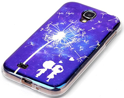 S4 Case, Galaxy S4 I9500 Case AIYZE Blue Light Soft TPU Gel Protective Back Case with Silicone Mobile Phone Stand Fit Samsung Galaxy SIV I9505 SPH-L720 SGH-I337 (Lovers Dandelion)