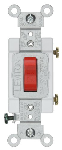 Leviton 1221-SR 20-Amp, 120/277-Volt, Toggle Single-Pole AC Quiet Switch, Heavy Duty Spec Grade, Grounding, Red