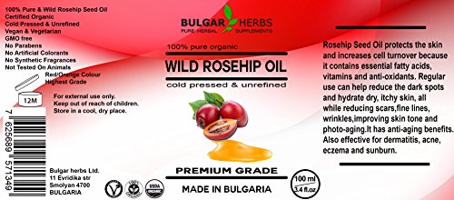 -. Title : Pure Bulgarian Rosehip Oil - Organic and Raw For Anti Aging, Anti Wrinkles, Anti Acne and many more - 100 ml, 3.4 Fl.Oz