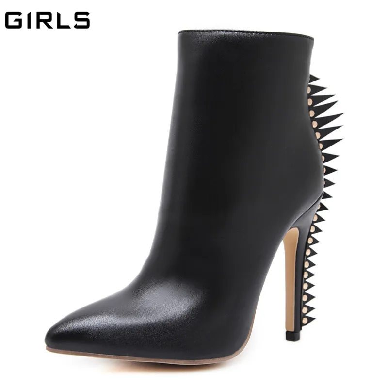 Style 3:utumn Winter Studded Ankle Boots White High Heel