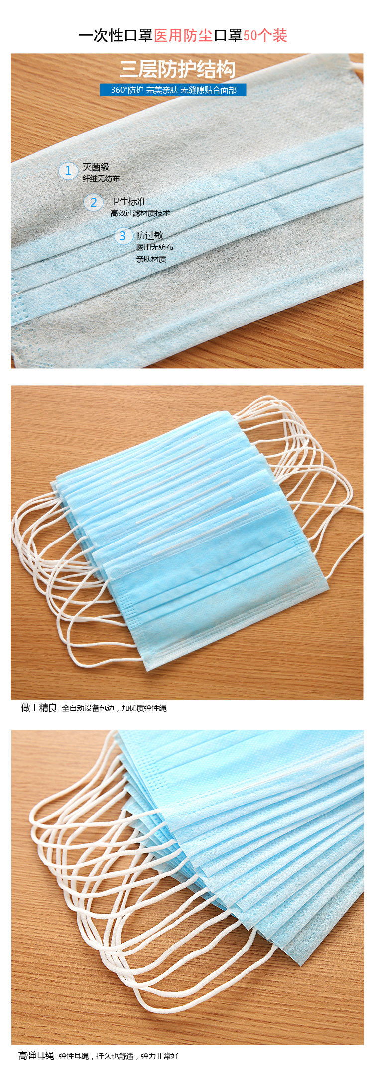 Products using non-woven fabrics, raw materials dissolved by ultrasonic spraying hot and spot welding, or sewing process made the band earhook. Nose clip, so that the face is more fitting for a variety of faces, no particulates ultrasonic sealing edge, comfortable to wear. It can be better to stop the dust and microorganisms, worn long, not tight, no allergic reaction; with smooth fabric to reduce fiber care off, disposable, maintenance-free, convenient and practical, more safety and health.