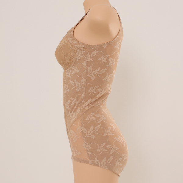 기능성이 매우 우수한 420'D하드타입의 바디수트 입니 다. 바디라인을 강하게 압박해주는 기능을 갖고 있어 보 정속옷을 오랫동안 착용하신 소비자분들께 알맞은 제품 입니다. 복부, 허리, 힙둘레에 속싱을 넣어주어 전체적으로 압박 이 강한 제품으로 설계되었으며, 특히 복부에 타미기능 을 넣어주어 뱃살을 효과적으로 압박해 줍니다. 컵라인은 '풀사이드 스트레치'타입으로 여러가지 컵 형 태 중에서 가장 안정적으로 가슴을 감싸주는 타입입니 다. 컵 상변과 옆상변에 원단을 덧대는 방식으로 설계 가 되어 윗가슴과 겨드랑이 살까지 완전히 감싸주는 형태 입 니다.