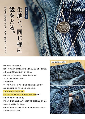 -. Feature : 2(メンズS/レディースM) 3(メンズM/レディースL) 4(メンズL/レディースXL) 5(メンズLL/レディースXXL) / ヴィンテージ / コットン100% 中国 / ・「最高の加工感を作るのに欠かせない14.0ozのごわごわデニム。」 ・「10 YEAR OLD USED PROCESSING」 ・「UNIONMADE(ユニオンメイド)ボタン・リベット。」 / ・「デニム生地の5画で作られたベイカーポケット」 ・「加工に耐えうる頑丈な縫製」 ・「プレミアムラインのみの限定タブ」