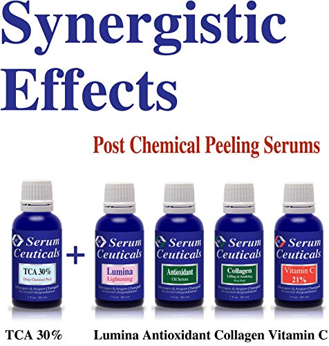 Caution Side Effects: A temporary painful, tingling or burning sensation has been often noted upon initial contact as well as heightened skin sensitivity, redness and peeling. These are very normal and will be disappeared soon but those with extra-sensitive or allergic skin should do a patch test on a small and less visible area first to determine if their skin may tolerate this serum. Never use manual exfoliators nor scrubbing brushes within 24 hours of using this serum. Never use this serum on the open or inflamed skin. Be careful to use any high or even low concentrates of TCA peel products. You have to read all directions, ingredients, warning and cautions when you buy any chemical peel products.