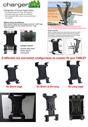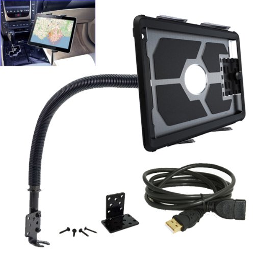 ChargerCity Flexible 20-Inch Aluminum Gooseneck Car Seat Floor Bolt Tablet Mount for all 7-12 Inch Screen Tablets Bundle with 10 feet USB Extension Cable