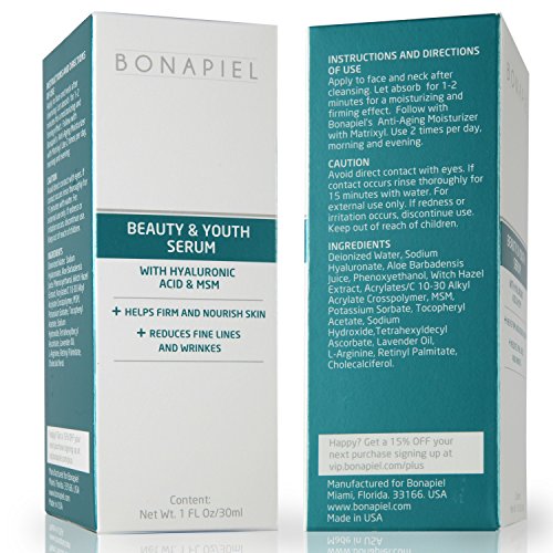 -. Title : Hyaluronic Acid Serum Tightens and Firms the Skin So You Look Years Younger - Eliminate Fine Lines and Wrinkles With This Best Anti Aging Serum - Works on Face and Neck - Contains Vitamins E, C and Pure MSM - Paraben Free - No Harmful Oils