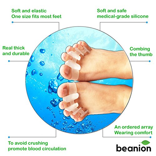 ?WHY to try toe separator straightener? Do you have to wear shoes most of the day, no matter it's high-heel shoes, sneakers, casual shoes or even slip-on shoes? Are you suffering from foot conditions or even low back pain? The answer is YES, many of us including me - who often wears high-heel shoes, I'm so tired after each long day because my feet hurt. ? WHAT benefits? Here is a natural foot therapy Beanion toe separators spreader kit including rubber Toe spreader Bunion toe stretchers, gel bunion protector Gel Heel pads, heel sleeves not only relieve foot pain, bunion pain relief, relieve pain from bone spurs, but also help promote blood circulation thanks to its curved design "So far, you've heard about toe corrector that is mostly recommended for sitting standing. What about weight-bearing activities? You should be happy to know that our foot pain relief products are special ones that you can use for such purpose." #x1F4DD; HOW to use? Gel Toe separators help re-align the bones of your feet, bring them into the natural position. You might experience a little bit of discomfort at first, it's recommended to wear the toe spacers gel for a short period of time, such as 5 to 15 min. at first. It is for the best to increase the amount of wearing time on a weekly basis until you reach 1 hour/day. #x1F44C; CARE Keep your medical-grade gel foot support clean by hand-washing with soapy water, let it dry naturally keep away from direct sunlight. You are healthy if your feet are healthy because the sole of your feet is called your "second heart". Take care of yourself, take care of your feet with Beanion product. #x1F6CD;? ADD TO YOUR CART NOW! 0 |