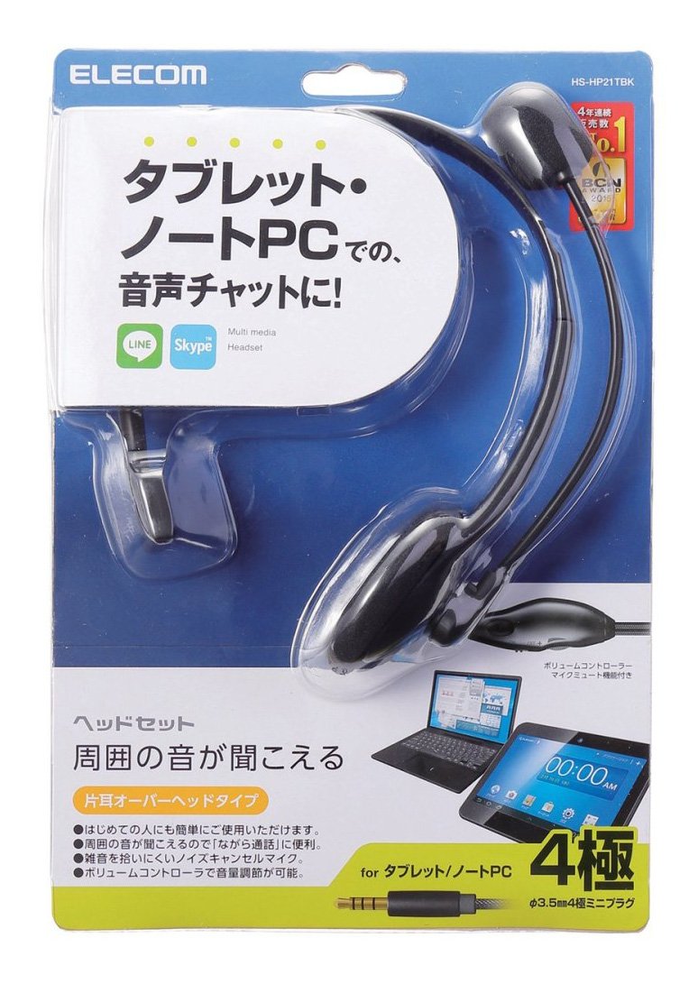 ELECOM Headset microphone ear overhead 4-pole pin jack endurance code 1.8m HS-HP21TBK