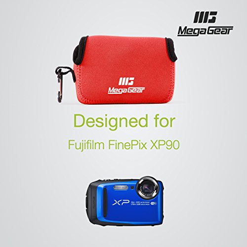 MegaGear ''Ultra Light'' Neoprene Camera Case Bag with Carabiner for Fujifilm FinePix Xp120, FinePix XP90 Digital Camera (Red)