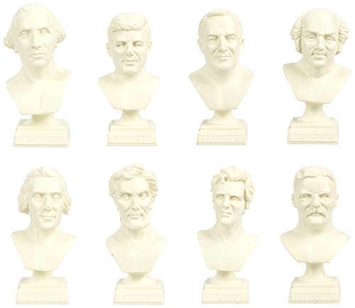 - 8 PROFESSIONALLY SCULPTED FIGURINES - This themed collection is perfect for U.S. History buffs. It includes 8 professional sculpted busts of some of the most influential presidents, including George Washington, Thomas Jefferson, John Quincy Adams, Andrew Jackson, Abraham Lincoln, Theodore Roosevelt, Franklin Roosevelt, and JFK.
